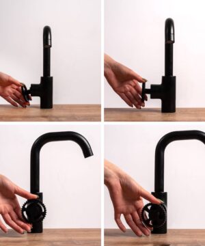 Predstavujeme Vám novú mimoriadne designovú a veľmi modernú kúpeľňovú umývadlovú batériu. Táto batéria sa dokonale hodí do Vašej kúpeľne, kde vyplní priestor a pritom zachová krásny vzhľad a estetiku interiéru. Batéria je určená na montáž dosku, ale možno ju tiež nainštalovať priamo na umývadlo a vďaka špeciálnej fáze výroby je batéria veľmi odolná a ľahko sa čistí. Dokonale sa hodí k ostatným prvkom interiérov, zariadených v klasickom aj modernom štýle. Dokonale navrhnutá a navyše vďaka svojmu nevšednému industriálnemu kohútiku neobyčajná batéria je vyrobená z vysoko kvalitnej mosadze s úpravou v čiernom prevedení. Lakovanie batérie bolo vykonané celkom v troch vrstvách, vďaka čomu je odolná voči korózii a strate farby.