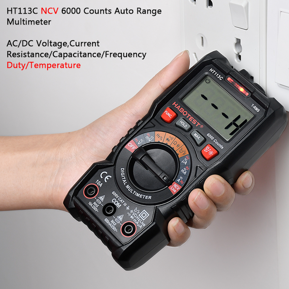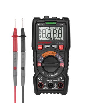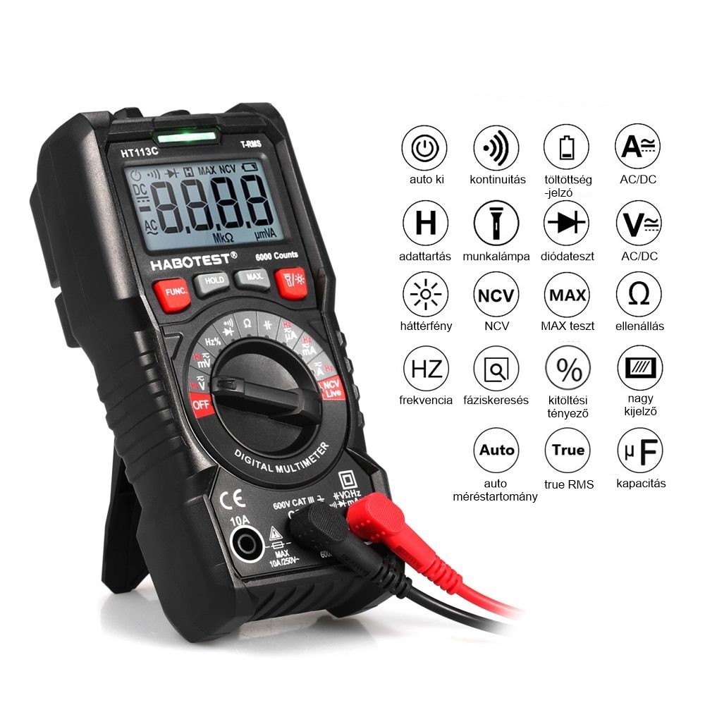 Digitálny univerzálny multimeter Habotest HT113C ponúka množstvo funkcií, ktoré sú perfektné pre kutilov a elektrikárske práce. Prístroj umožňuje merať jednosmerné a striedavé napätie, jednosmerný a striedavý prúd a odpor, navyše umožňuje testovať diódy a ponúka funkciu NCV. Špeciálne tlačidlá vám umožnia pohodlne meniť funkcie, zatiaľ čo ľahko čitateľný displej poskytuje prístup k výsledkom, ktoré potrebujete. Počet impulzov je 6000, navyše multimeter umožňuje meranie kontinuity, faktora plnenia a ukladanie dát.