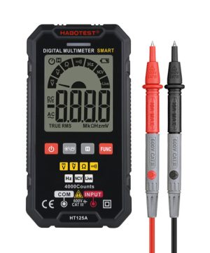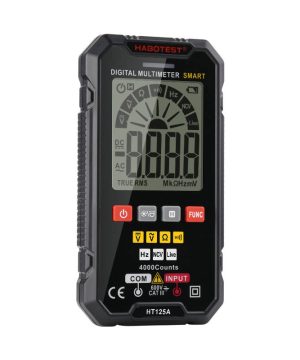 Digitálny univerzálny multimeter Habotest HT125A je šikovný prístroj, ktorý prekvapí obrovskými možnosťami. Umožňuje okrem iného merať s vysokou presnosťou striedavé a jednosmerné napätie, odpor, spojitosť alebo frekvenciu. Okrem toho ponúka funkciu Live Test, umožňuje testovanie diód, bezkontaktnú detekciu napätia (NCV) a mnohé ďalšie. Dôležité je, že multimeter má praktické tlačidlá, pomocou ktorých môžete efektívne zvoliť funkciu.