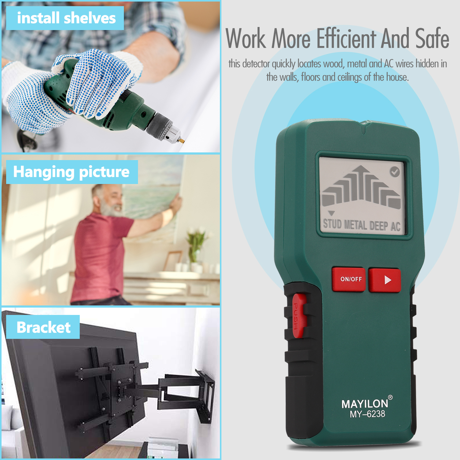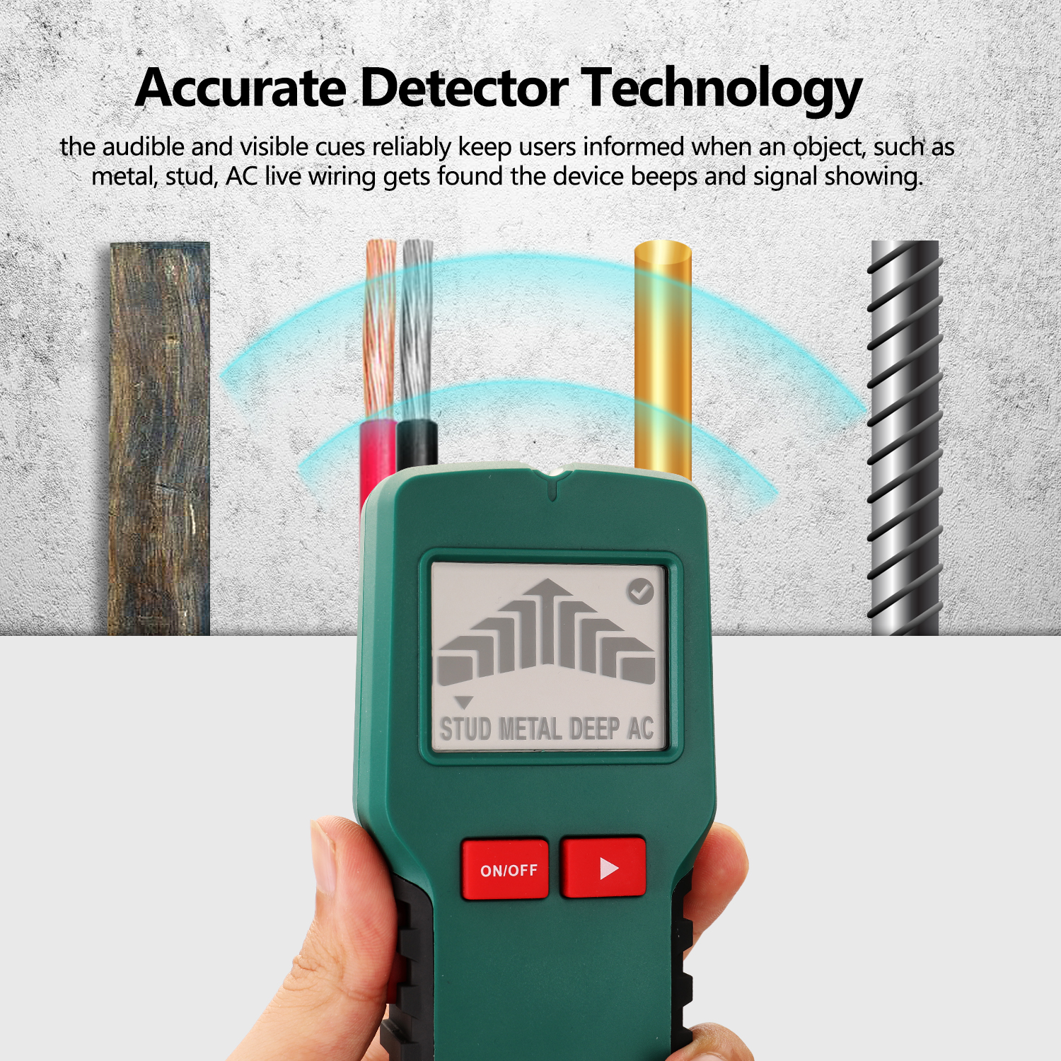 Zahoďte svoje obavy z náhodného poškodenia drôtov, ktoré môže mať za následok elektrické zlyhanie alebo dokonca zabitie elektrickým prúdom. Habotest spoľahlivo detekuje kov, drevo, AC drôty a duté priestory. Vďaka svojej presnej detekčnej technológii, keď detektor deteguje predmet, ako je kov, kolík alebo striedavý vodič, vydá zvukový a svetelný signál. Už sa nemusíte obávať náhodného poškodenia káblov alebo omylu navŕtania na nesprávnom mieste – s detektorom sa môžete cítiť isto pri inštalácii alebo renovácii.