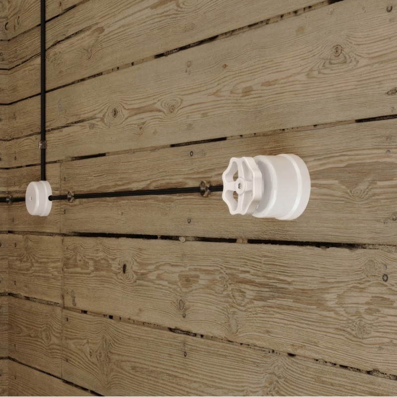 Elektrický vypínač z bieleho porcelánu pripomína klasický tvar vodného ventilu a dodáva produktu vintage šarm a nadčasovú príťažlivosť. Okrem toho, že je tento komponent funkčný, predstavuje aj dekoratívny prvok, ktorý zvýrazňuje dekor a zároveň dodáva nádych farby: budete si môcť vybrať zo širokej škály farieb, ktoré buď doplnia miestnosť, alebo vytvoria zábavný kontrast.