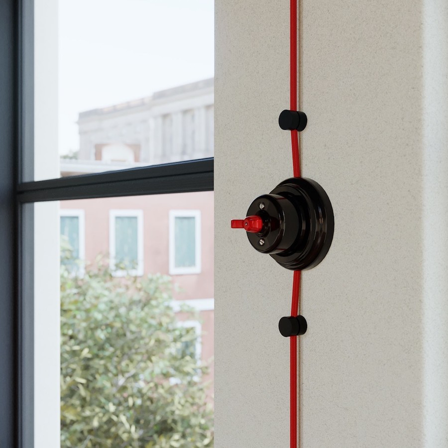 Čierny porcelánový Vypínač/prepínač so škrtiacou klapkou je dokonalým doplnkom, ktorý dodá jedinečný retro nádych akémukoľvek odkrytému elektrickému systému. Tento komponent sa používa na zapínanie a vypínanie jedného svetla z viacerých bodov pomocou otáčania matice.