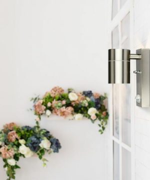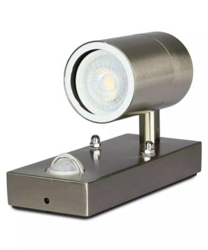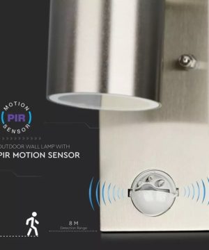 Záhradné nástenné svietidlo so senzorom 2 x GU10, IP44. Držiak lampy je vybavený snímačom pohybu a snímačom súmraku, ktoré umožňujú meniť dobu svietenia a intenzitu okolitého svetla.