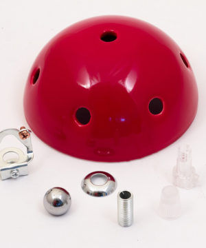 - Keramická rozeta, s priemerom 120 mm s kotviacim systémom pozostávajúcim z dutej závitovej rúrky, 1 priehľadnej káblovej svorky, závitovej konzoly na zavesenie, chrómovaného guľového terminálu (uplatnenie v prípade, že stredný otvor nebude použitý)