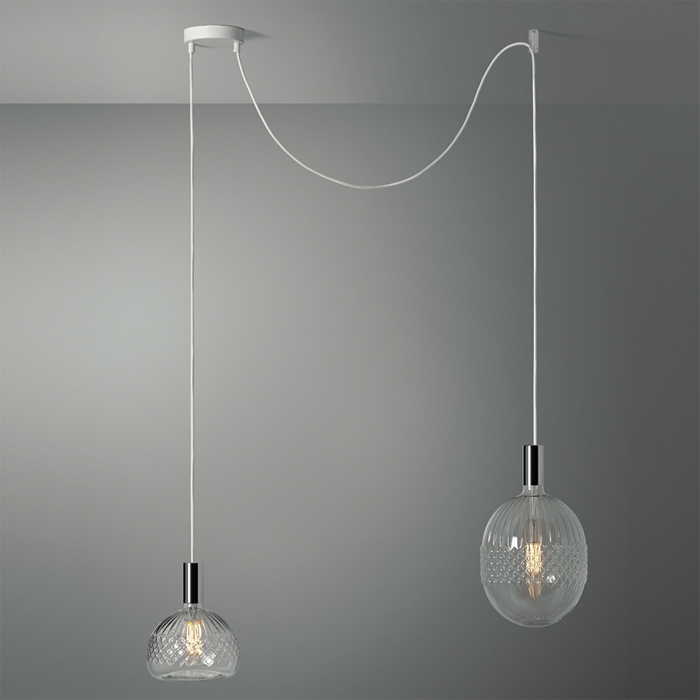 Závesné svietidlo MILANO je svetelné riešenie pozastavajúce s 2 pätíc v bielej farbe. Vhodné pre spálne, kuchyne a iné miestností, ktoré je potrebné osvetliť a oživiť. Toto riešenie osvetľuje priestor diskrétnosťou a jednoduchosťou pri skromných nákladoch. Môžete si vybrať medzi teplejším svetlom s vysokou kvalitou svetla alebo jasnejším svetlom. V obidvoch prípadoch je možné meniť intenzitu svetla pomocou stmievačov (je potrebné disponovať zabudovaným stmievačom alebo ho dokúpiť). 2 Závesné svietidlá vychádzajúce zo stropnej rozety s 2 žiarovkami. Obzvlášť vhodné pre stredné prostredia, ako sú haly, presiene, spálne. Môžete si vybrať rôzne modely z elegantne navrhnutých žiaroviek s mimoriadnym vizuálnym komfortom. Tieto kombinácie sa vyznačujú žiarovkami s povrchovou úpravou podobnou porcelánu, ktoré dávajú štruktúre veľmi rafinovaný vzhľad a majú rozptýlený, rovnomerný, veľmi relaxačný a zároveň intenzívny svetelný efekt. Žiarovky s povrchovou úpravou podobnou krištáľu majú žiarivejšie, živšie a ostrejšie svetlo. Obidve riešenia ponúkajú vysoké farebné podanie a možnosť zmeny intenzity svetla ( v prípade že máte zabudovaný vlastný stmievač alebo si dokúpite stmievač z nášho sortimentu).