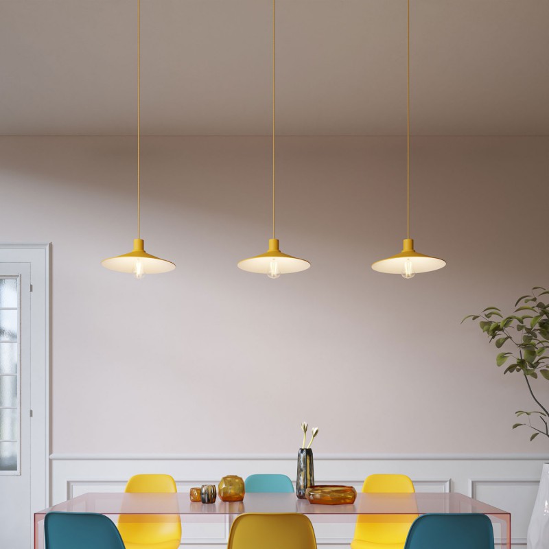 Hľadáte závesné svietidlo v modernom dizajne, ktoré rozžiari vašu izbu? Stropné svietidlo Pastel so smaltovaným kovovým tienidlom s čistými líniami a pastelovými farbami je presne to, čo potrebujete! Vďaka jednoduchému a veľmi všestrannému dizajnu toto svietidlo harmonicky zapadne do moderných a súčasných priestorov. Pastelové prevedenie prispieva k zvýrazneniu jasu aj v najmenšej miestnosti a dodáva tomuto svietidlu jemný, no živý vzhľad, vhodný do rôznych miestností, ako je kuchyňa, jedáleň alebo detská izba.
