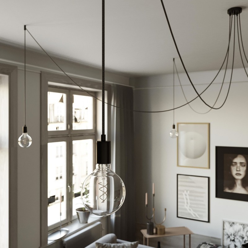 Svietidlo Pavúk vyrobený z kovových objímok a kovovej nádhernej rozety. Každé rameno má dĺžku 4 metre, vďaka čomu zapadne do každého prostredia. Tento kvalitný model Pavúka je vyrábaný a zostavovaný v Taliansku a je certifikovaný CE certifikátom.