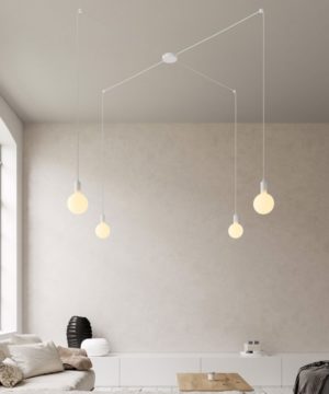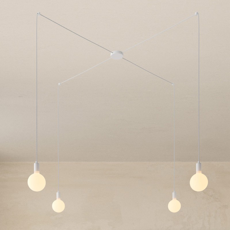 Svietidlo Pavúk vyrobené zo štyroch objímok a kovovej rozety. Pavúk je jedinečné a očarujúce závesné svietidlo, ktoré má funkčnú aj dekoratívnu funkciu zároveň. Dodávané úchyty káblov vám umožnia vytvoriť 4 lampy po stranách. Vďaka rôznym dostupným kovovým povrchom môžete svoj 4-svetelný pavúk zladiť s vaším interiérom, od saténového kovu, ktorý je ideálny pre vintage alebo industriálne prostredie, až po matnú bielu, ktorá dokonale interpretuje škandinávsky štýl.