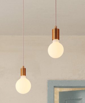Hliníkové závesné svietidlo TOP s drevenou dekoračnou päticou, biela farba