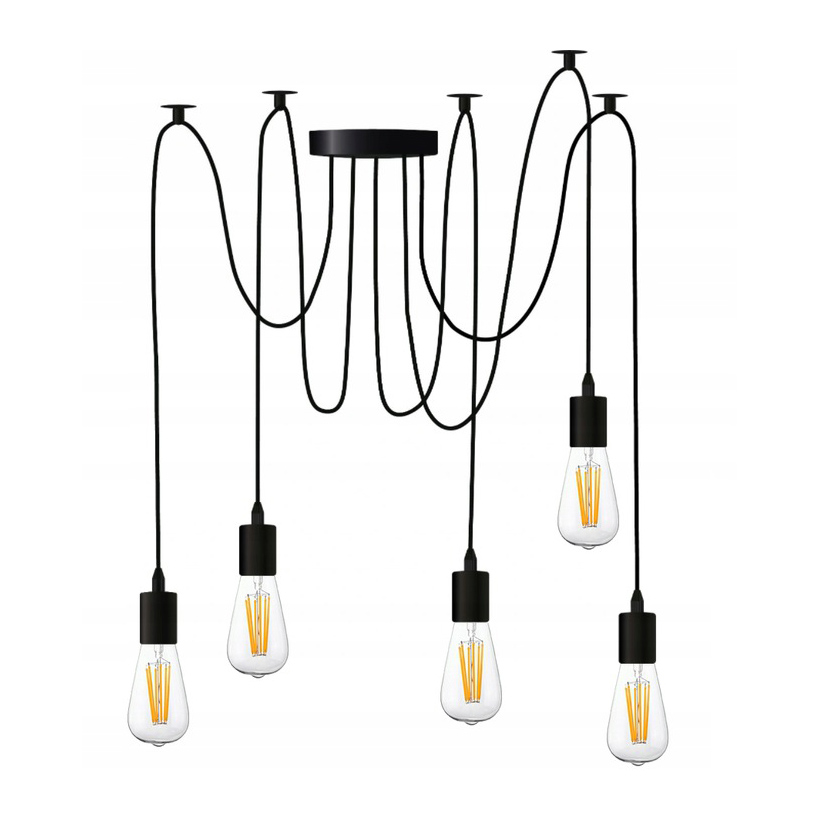 EDISON LUSTER – absolútny MUST-HAVE! Kolekcia je veľmi rôznorodá, nájde uplatnenie v každom interiéri a dodá mu jedinečný charakter. Štýlová lampa je zaujímavým nápadom pre dizajnové osvetlenie interiéru. Držiak lampy je zavesený na čiernych opletených kábloch, ktoré sa montujú do stropu. Vďaka veľkému počtu dlhých káblov dokáže osvetliť každý kút miestnosti. Určite je tento model určený pre individualistov, ktorí si cenia umelecký štýl. Minimalistické a štýlové viac kovové závesné svietidlo Loft vyrobené zo starostlivo vybraných komponentov a ozdobného opletu najvyššej kvality. Lampa Spider doplnená stropnými držiakmi, ktoré umožňujú ľubovoľné usporiadanie káblov na strope. Svietidlá sú ručne montované zo starostlivo vybraných komponentov. Ak si nie ste istí, ako bezpečne a správne pripojiť závesné svietidlo, obráťte sa na kvalifikovaného elektrikára.