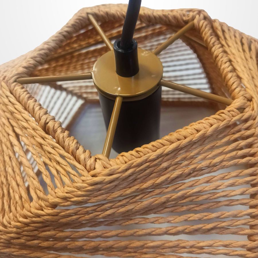 Závesné lanové svietidlo Pavúk vyrobené z jutových hrubých káblov a kovovej rozety. Pavúky – Jedná sa o svietidlá určené na strop v pavučinovom vzhľade. Pavúk je jedinečné a očarujúce závesné svietidlo, ktoré má funkčnú aj dekoratívnu funkciu zároveň. Dodávané úchyty káblov vám umožnia vytvoriť visiace lampy po stranách. Viacpäticové svietidlá (pavúky) nazývané aj tzv. Pavúky. Jedná sa o svietidlá určené na strop v pavučinovom vzhľade. Svietidlá sú tvorené skupinou káblov a objímok v historicých a moderných štýloch. Pri výrobe lampy bol použitý najkvalitnejší materiál. Tým bol dosiahnutý dokonalý povrch, odolný voči poškriabaniu a oderu alebo mechanickému poškodeniu. Unikátny tvar je ideálny pre každú miestnosť bez ohľadu na jeho štýl.